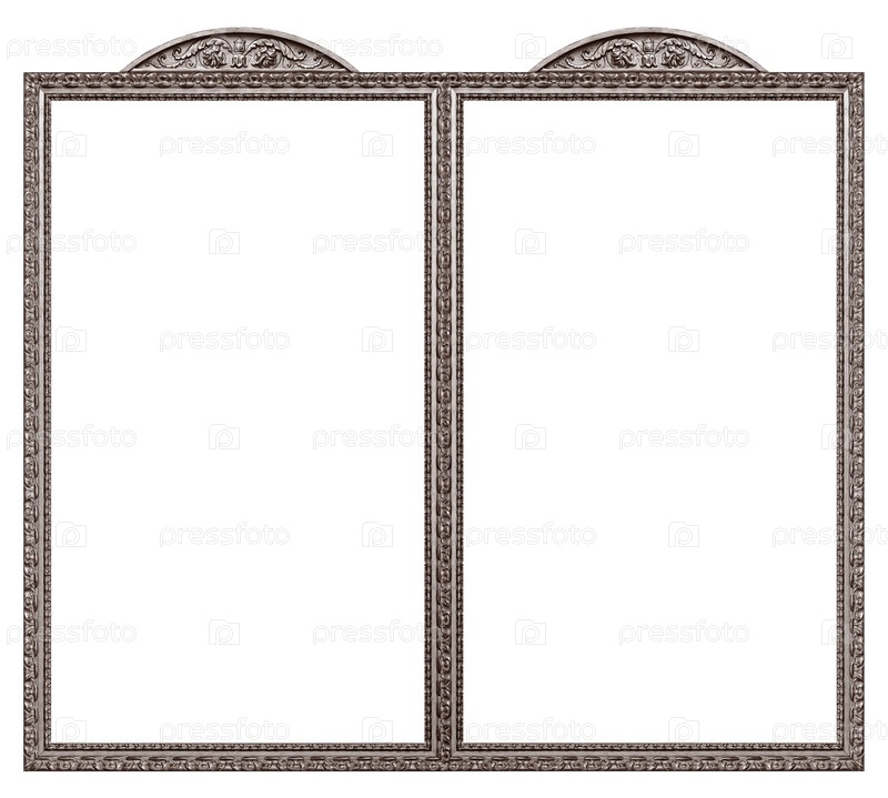 Двойная серебряная рама (диптих) для картин, зеркал или фотографий, выделенных на белом фоне