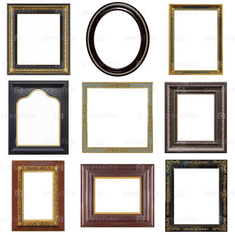 Набор деревянных рамок для картин, зеркал или фотографий, изолированных на белом фоне