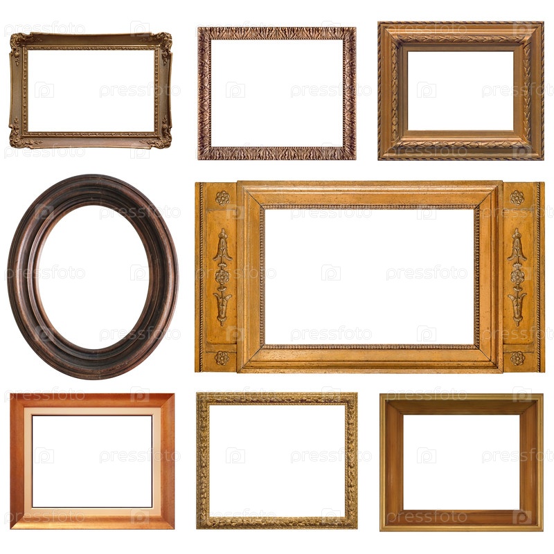 Набор деревянных рамок для картин, зеркал или фотографий, изолированных на белом фоне
