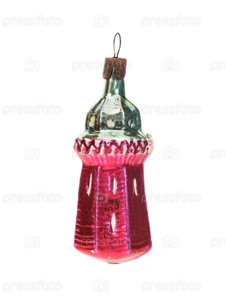 Стеклянная рождественская игрушка (как замок), изолированная на белом фоне