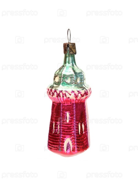 Стеклянная рождественская игрушка (как замок), изолированная на белом фоне
