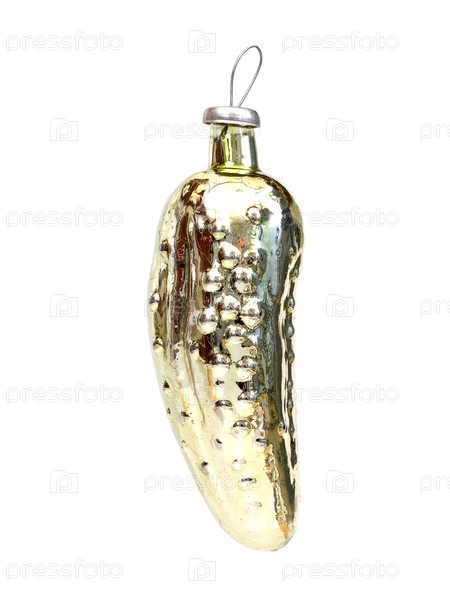 Стеклянная рождественская игрушка (как огурчик) изолирована на белом фоне