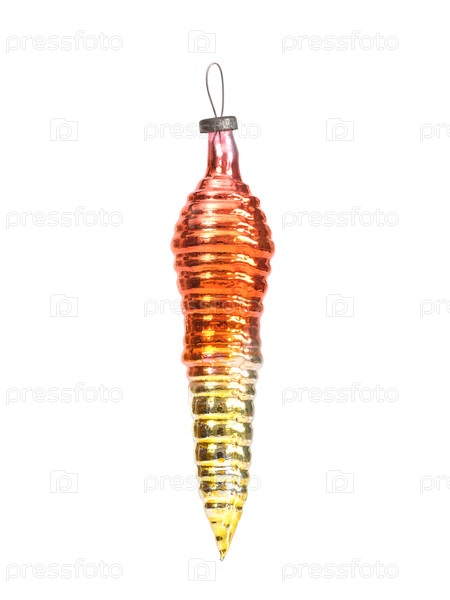 Стеклянная рождественская игрушка (как морковь), изолированная на белом фоне