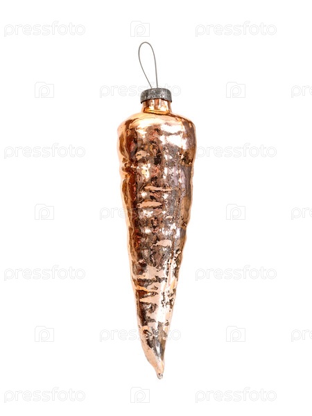 Стеклянная рождественская игрушка (как морковь), изолированная на белом фоне
