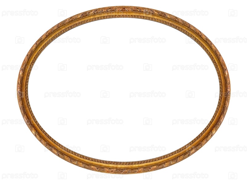 Золотая овальная рама для картин, зеркал или фотографий, изолированных на белом фоне