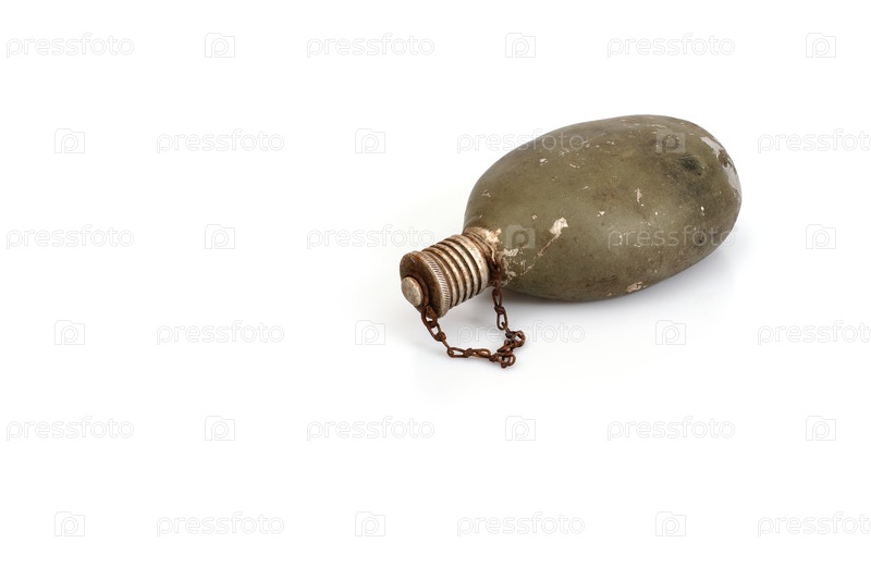 Античная ржавая военная колба изолирована на белом фоне