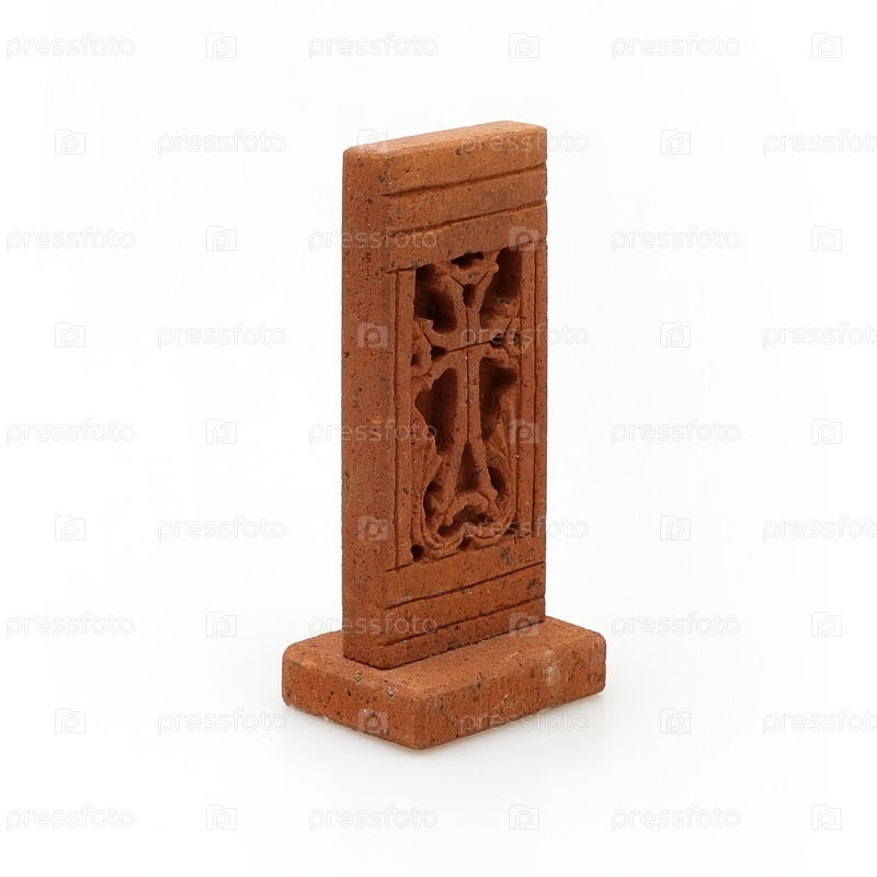 Каменный армянский крест (хачкар) изолирован на белом фоне