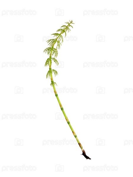 Молодой конский хвост (Equisetum) прорастает Изолированный на белом фоне, ресница готова