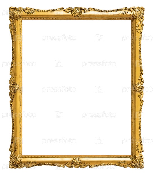 Золотая рама для картин, зеркал или фотографий, изолированных на белом фоне