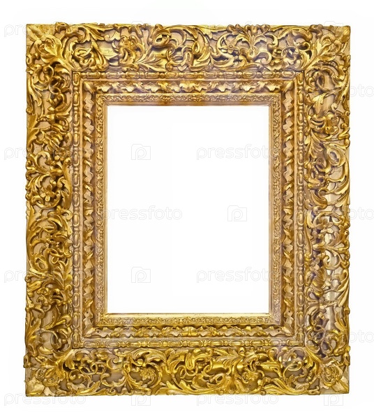 Золотая рама для картин, зеркал или фотографий, изолированных на белом фоне