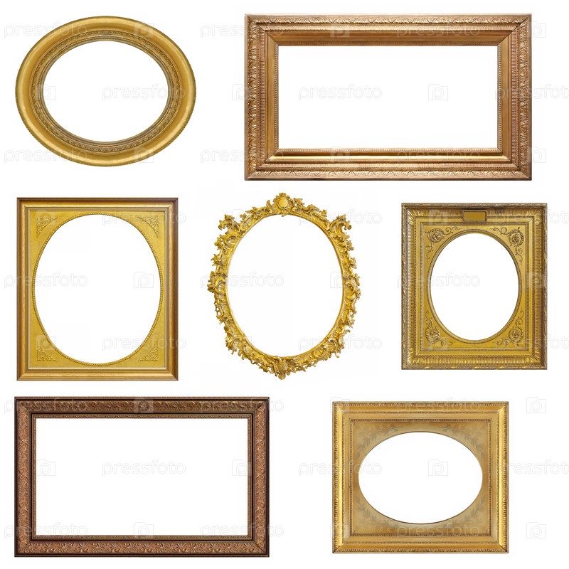 Набор деревянных рамок для картин, зеркал или фотографий, изолированных на белом фоне