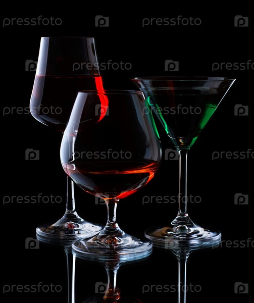 Разные бокалы на черном фоне