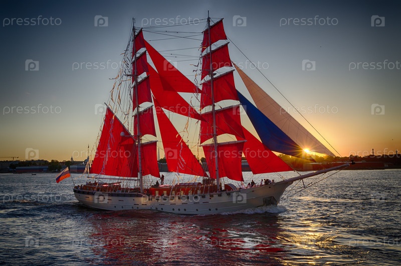 Бригатин с красными парусами