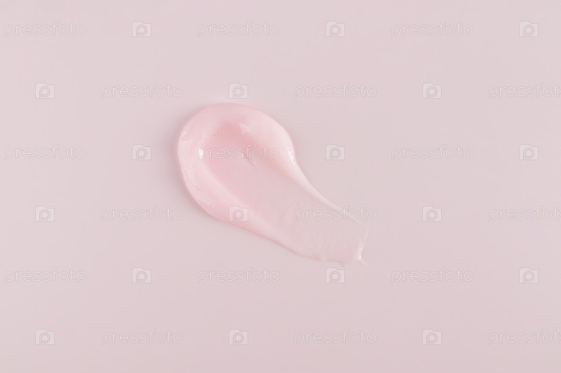 Красивый пример косметического прикосновения текстуры бальзама для губ или маски для ухода за кожей на губах. Нежная розовая текстура. Вид сверху. Копировальное пространство. Розовый фон