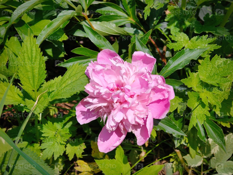 Розовый пионный цветок на клумбе