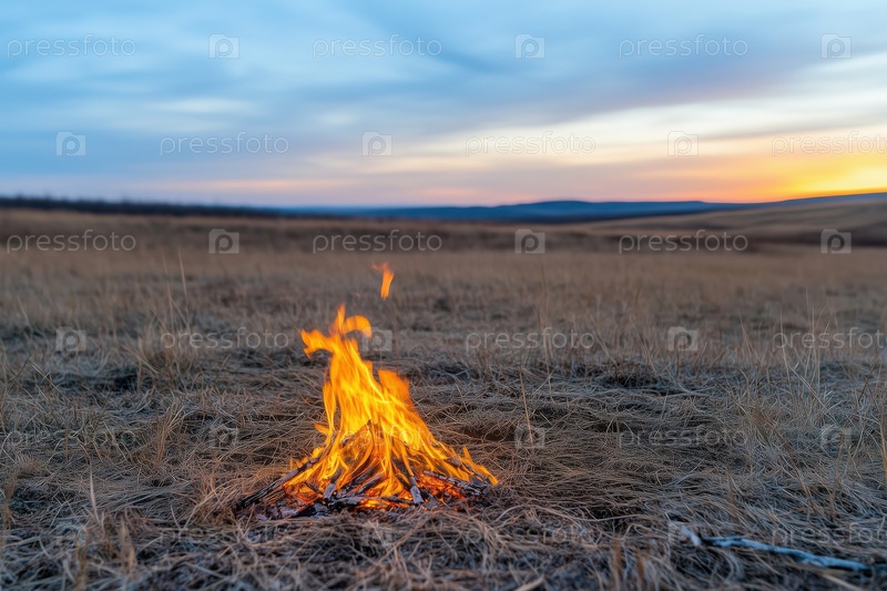 Неугасимый огонь среди сухой травы - опасность диких пожаров