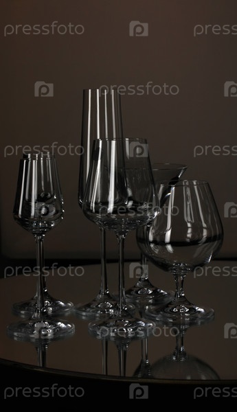 Разные бокалы на черном фоне
