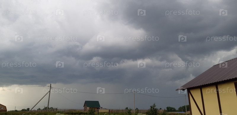 Штормовые облака собираются над сельским ландшафтом с намеком на грядущий дождь в ночном небе
