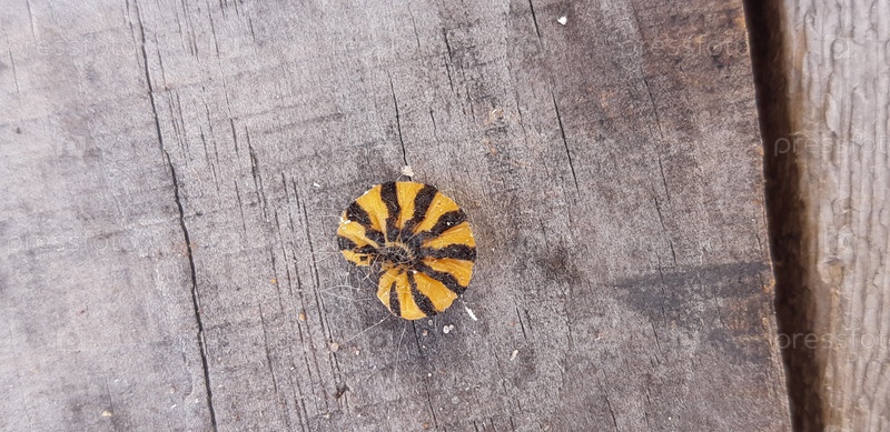 Красочные полосатые насекомые на деревянной поверхности при дневном свете показывают узоры и текстуры
