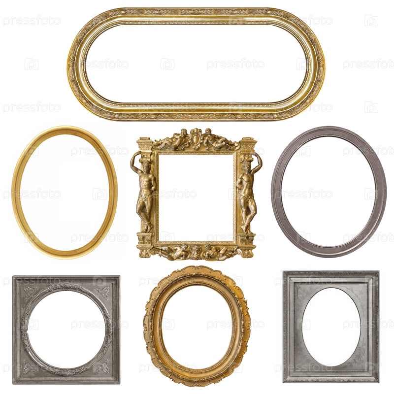 Набор деревянных рамок для картин, зеркал или фотографий, изолированных на белом фоне