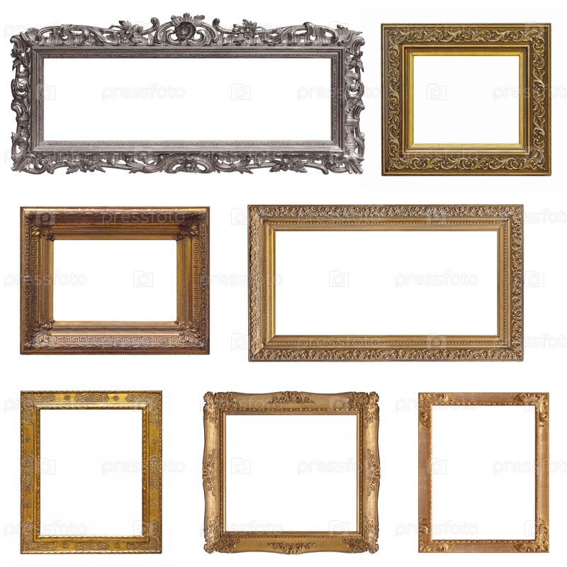 Набор деревянных рамок для картин, зеркал или фотографий, изолированных на белом фоне