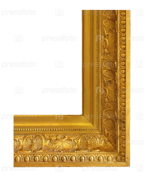 Золотая рама для картин, зеркал или фотографий, изолированных на белом фоне