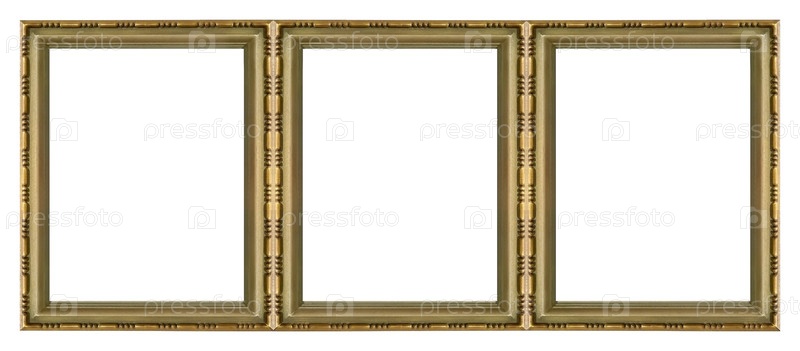 Золотая рама для картин, зеркал или фотографий, изолированных на белом фоне