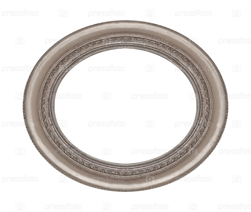 Серебряная овальная рама для картин, зеркал или фотографий, изолированных на белом фоне