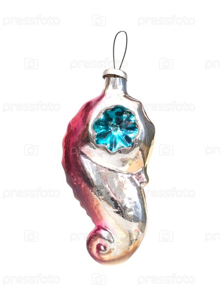 Стеклянная рождественская игрушка (такая как морской конь или гиппокамп), изолированная на белом фоне