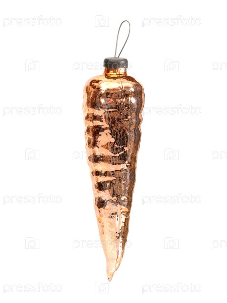 Стеклянная рождественская игрушка (как морковь), изолированная на белом фоне