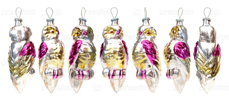 Стеклянная рождественская игрушка (как сова) изолирована на белом фоне