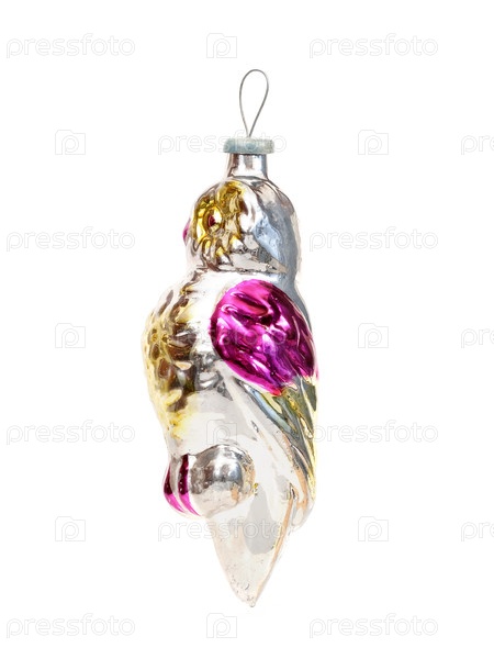 Стеклянная рождественская игрушка (как сова) изолирована на белом фоне
