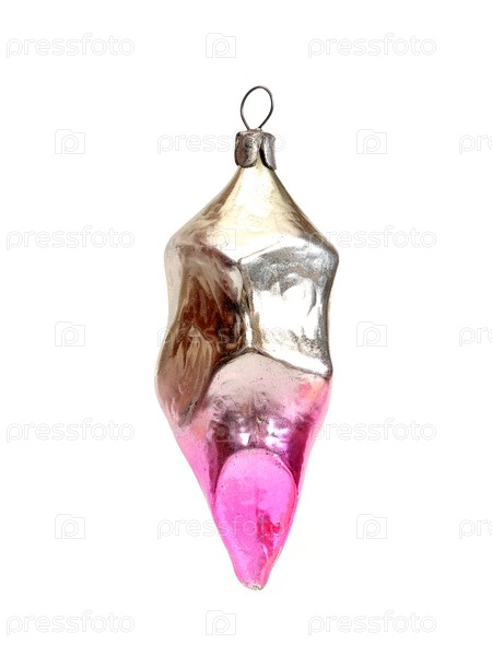 Стеклянная рождественская игрушка (как ледяной кусок), изолированная на белом фоне