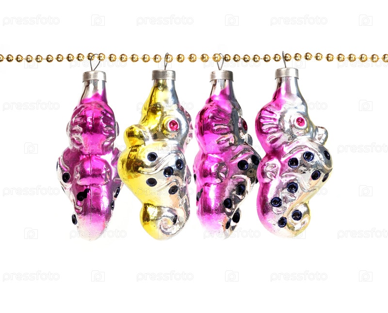 Стеклянная рождественская игрушка (такая как морские кони или гиппокамп), изолированная на белом фоне