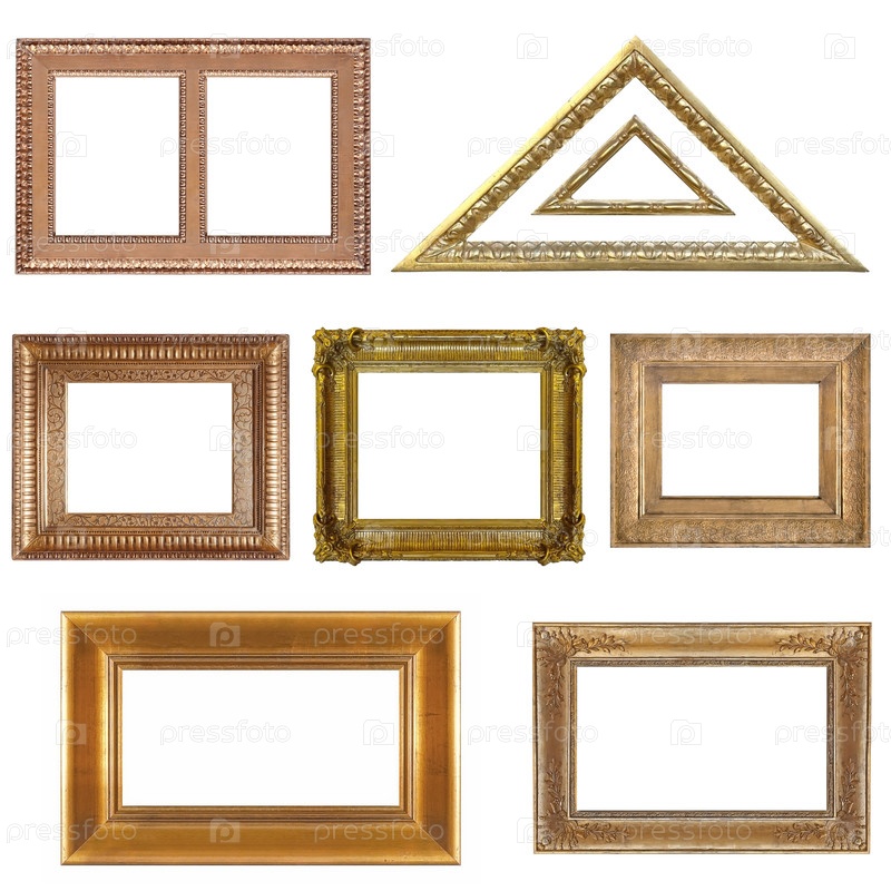 Набор деревянных рамок для картин, зеркал или фотографий, изолированных на белом фоне