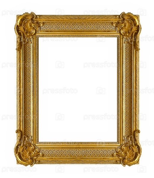 Золотая рама для картин, зеркал или фотографий, изолированных на белом фоне с готовым вырезом
