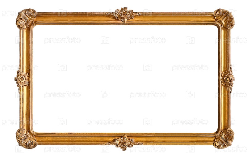 Панорамная золотая рама для картин, зеркал или фотографий, изолированных на белом фоне, готовая к вырезу
