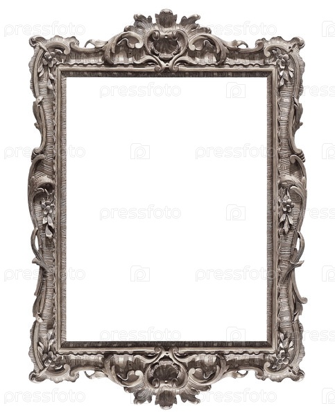 Серебряная рама для картин, зеркал или фотографий, изолированных на белом фоне