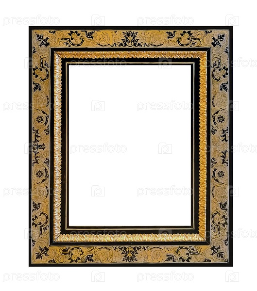 Золотая рама для картин, зеркал или фотографий, изолированных на белом фоне