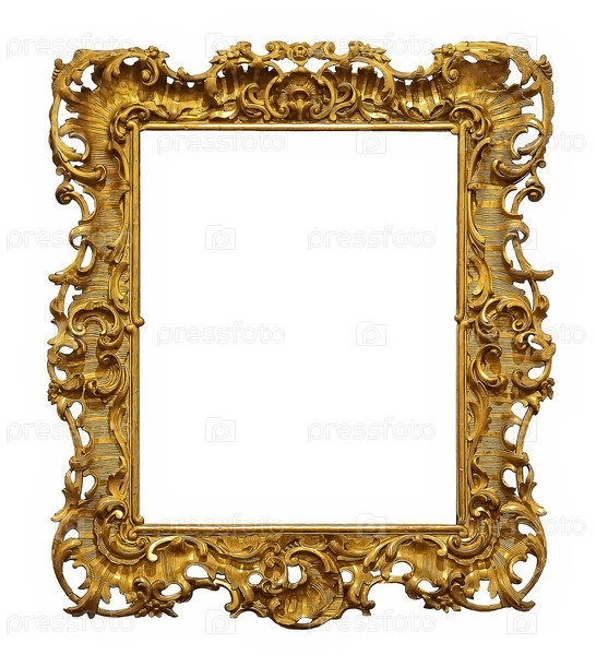 Золотая рама для картин, зеркал или фотографий, изолированных на белом фоне с готовым вырезом