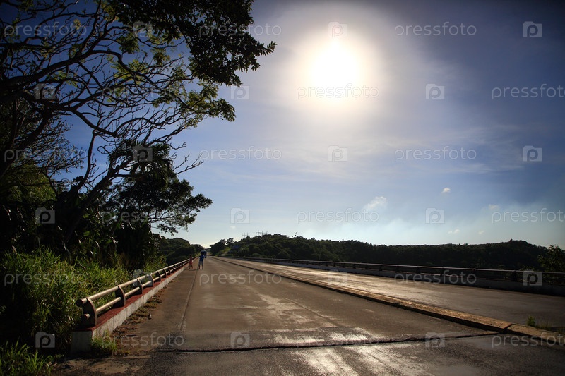 Вид в полдень вдоль дорожного моста и шоссе