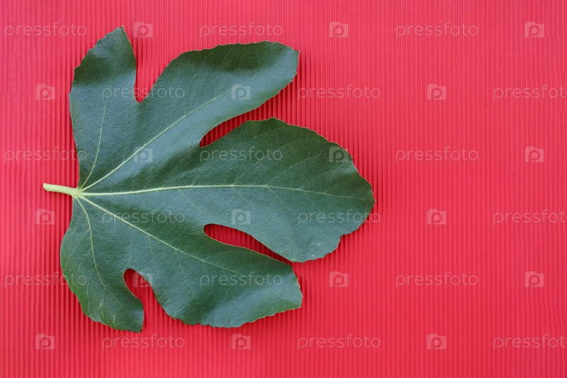 Зеленый фиговый лист на красном фоне