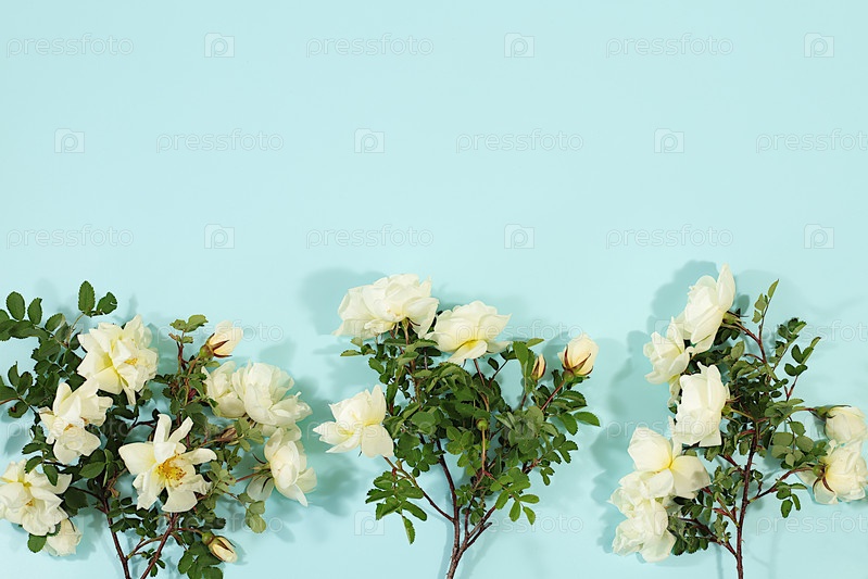 Красивый натюрморт с ветвями дико-розовых бедер и чайной розы на элегантном современном столе, абстрактная цветочная аранжировка. шаблон для вашего дизайна, минималистическая концепция красоты, цветовая карта