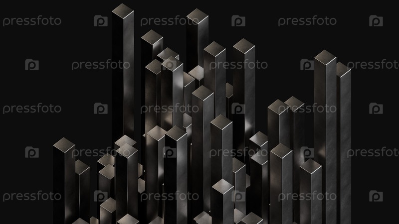 3D-рендеринг металлических столбов на темном фоне изометрия