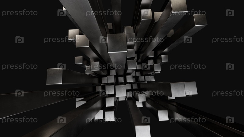 3D-рендер металлических столбов на темном фоне