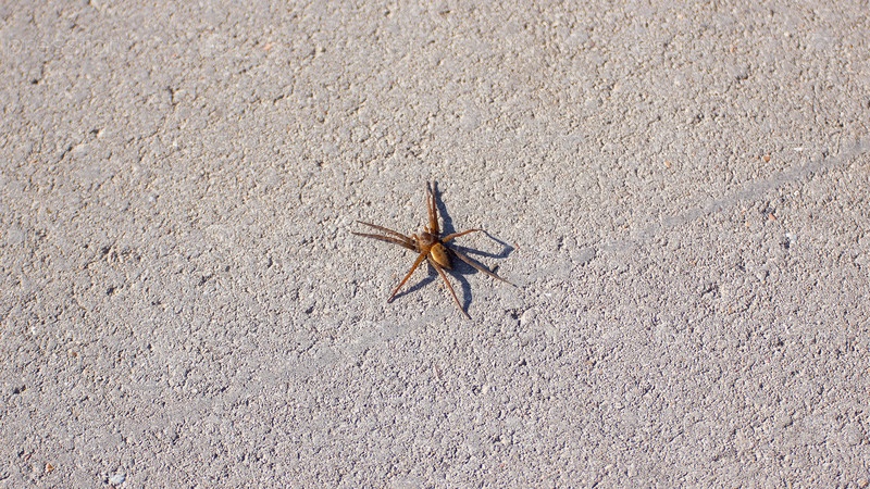 Волчий паук на асфальте в солнечный день