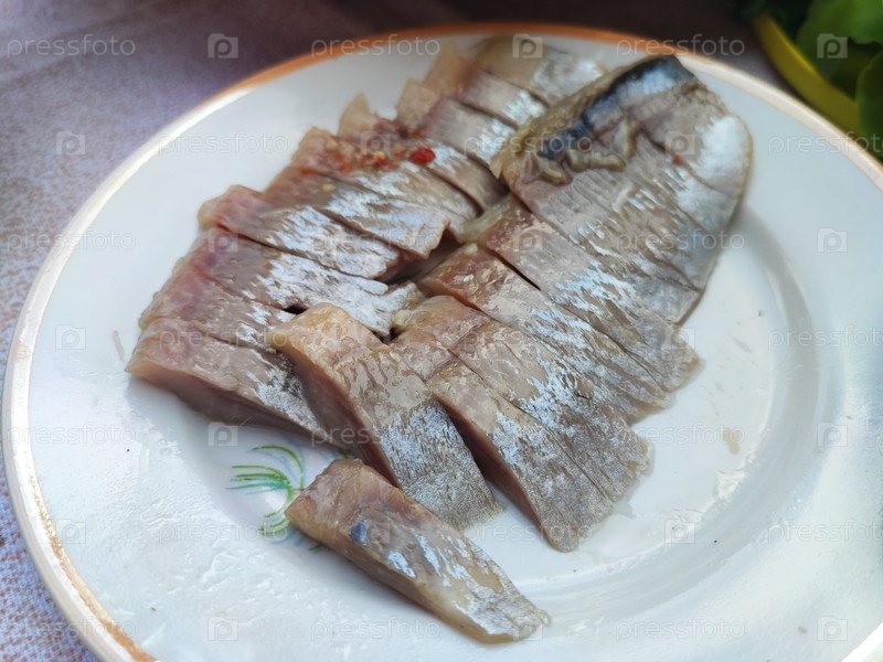Соленая сельдь в тарелке Фила