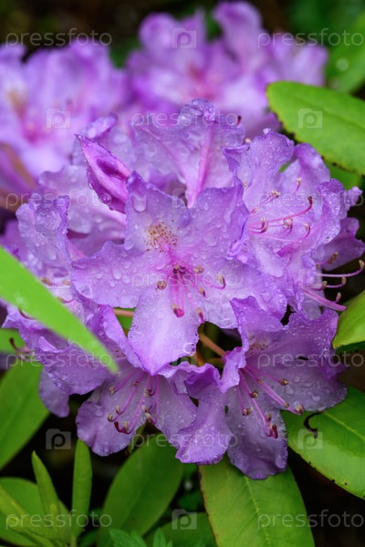 Фиолетовый цветок рододендрона с капельками дождя на нем