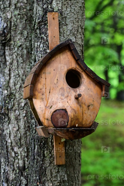 Лесной птичий домик на дереве в лесу