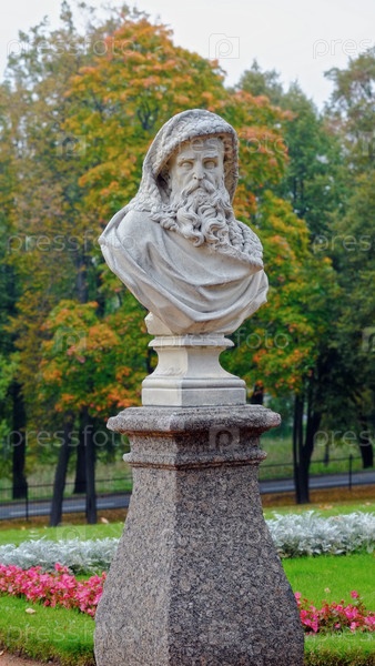 Осенний парк и глиняная китайская ваза с овощами.Петра I Парк Палац Путевого в Санкт-Петербурге